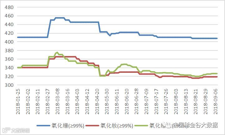 2018年氧化镨(钕、镨钕)价格走势图 元/公斤
