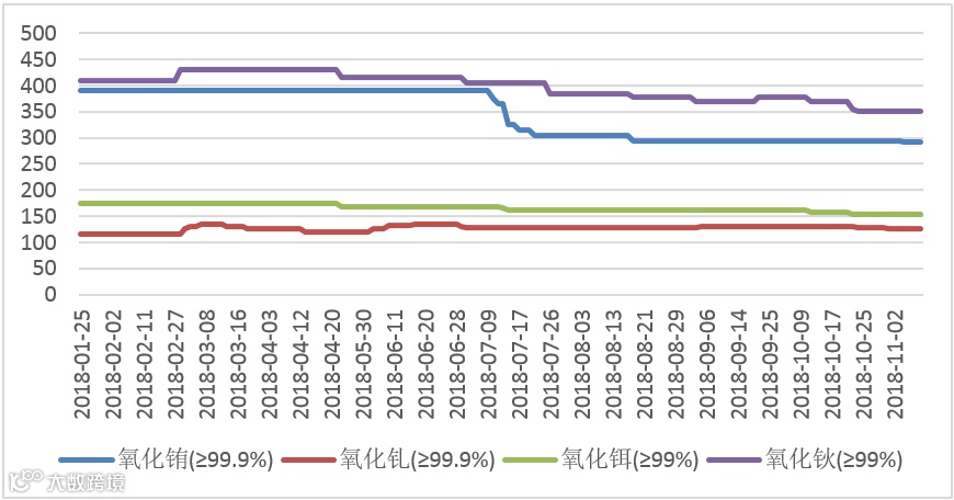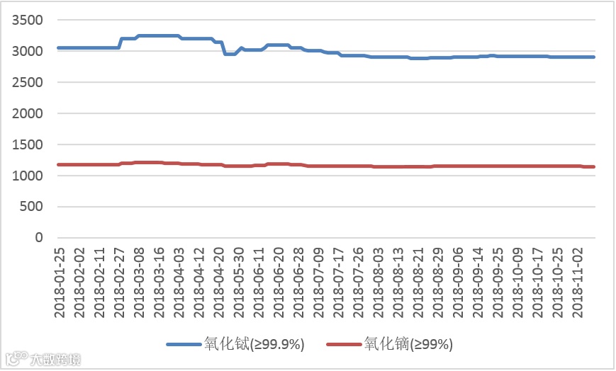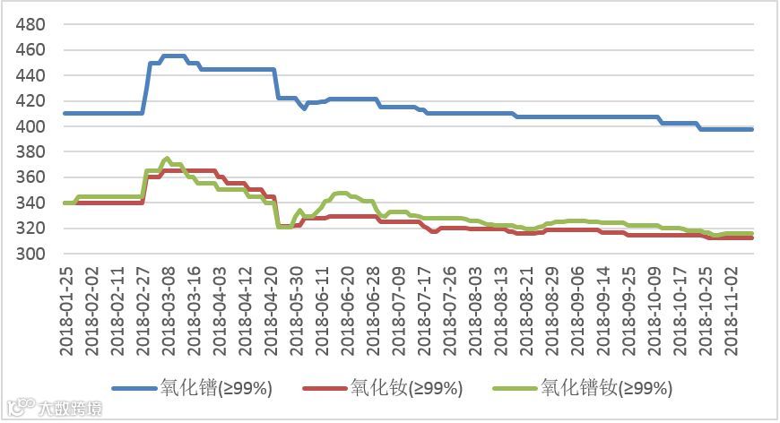 2018年氧化镨(钕、镨钕)价格走势图 元/公斤