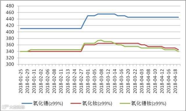 2018年氧化镨(钕、镨钕)价格走势图 元/公斤