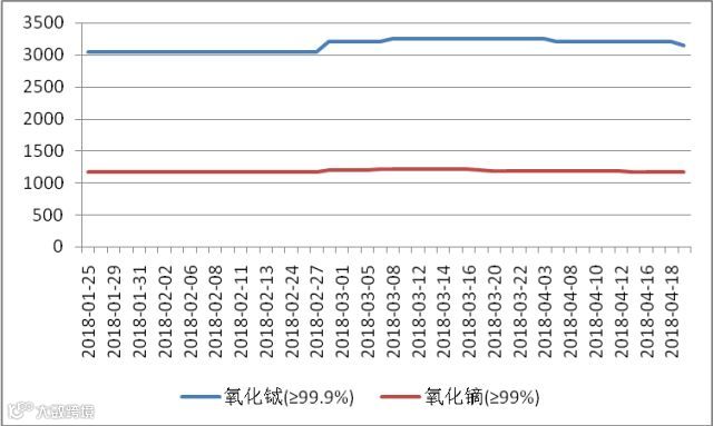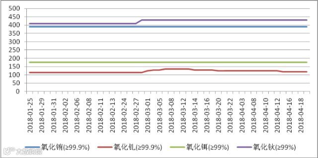 2018年氧化铕(钆、钬、铒)价格走势图 元/公斤