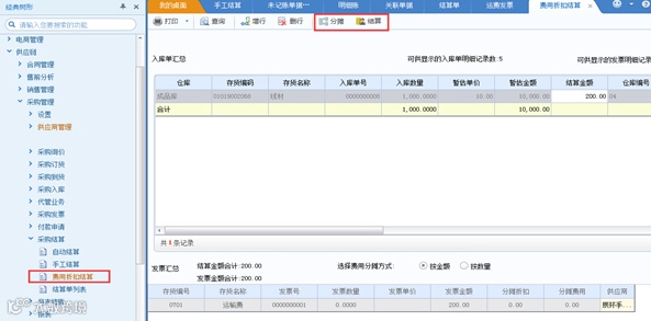 采购与费用发票不同期到,需做费用折扣结算