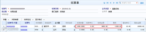 ◆入库单记账后,做结算成本处理,系统会生成费用折扣结算的入库调整单,备注显示为结算单号。