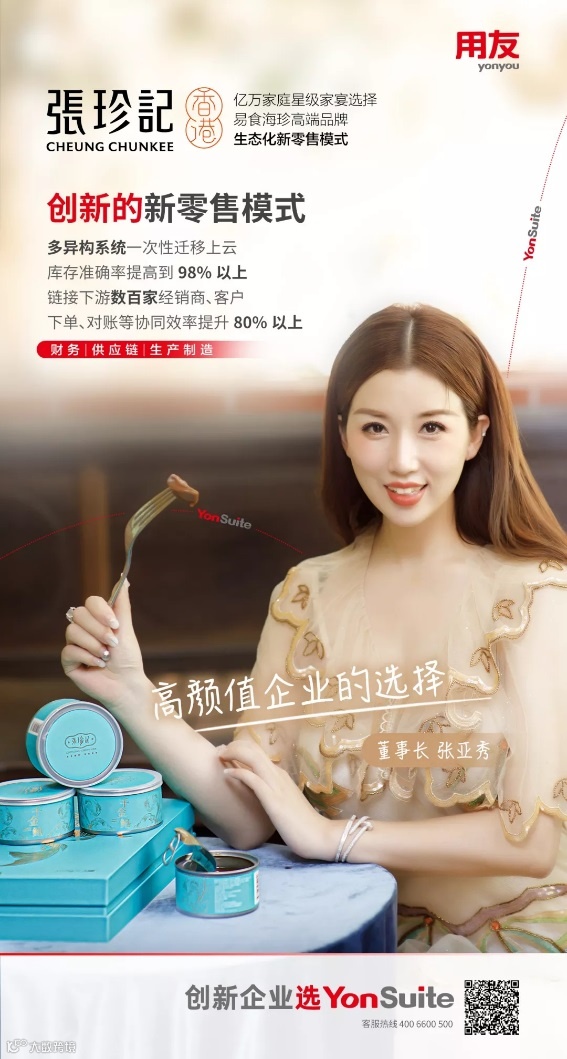 采用用友YonSuite平台后,张珍记内部团队将多异构系统一次性迁移上云,管理库存准确率提高到98%以上。这套云端平台链接了下游数百家经销商和客户。使得新消费场景下的国潮品牌张珍记在下单、对账等协同效率上提升80%以上。