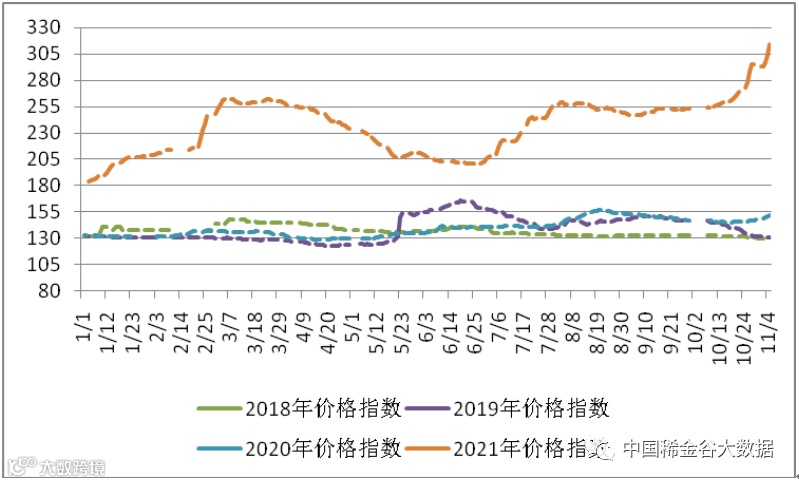 图4 2018-2021年稀土价格指数同期走势图