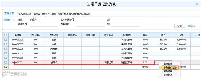 计价方式为个别计价,出库单未做个别计价指定,在正常单据记账界面该出库单是灰色的无法勾选;