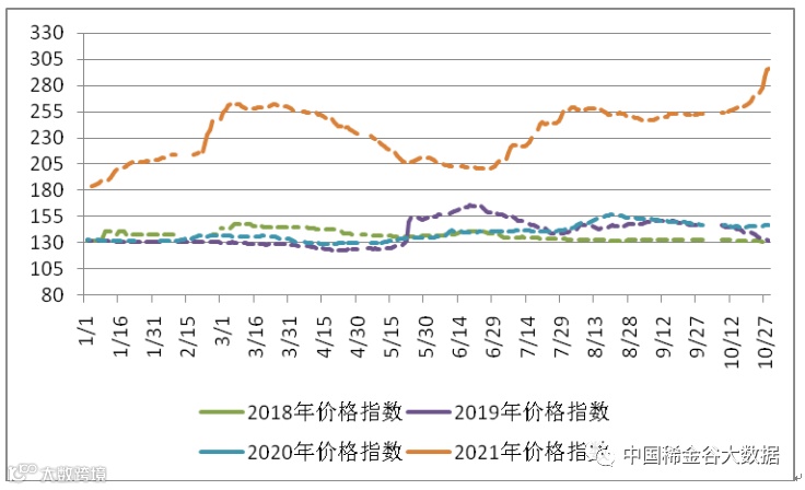 图4 2018-2021年稀土价格指数同期走势图