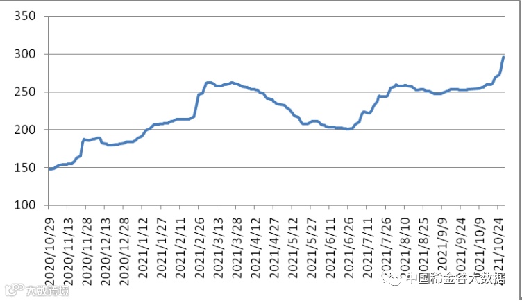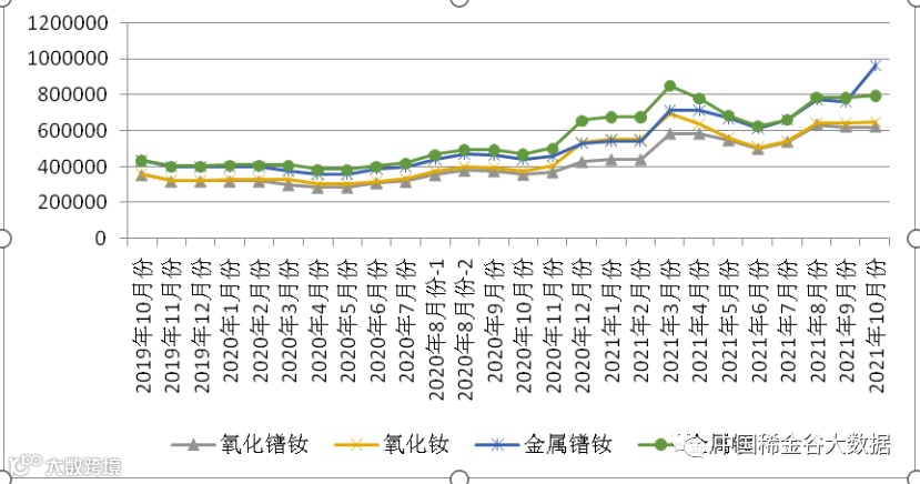 图1 镨钕系轻稀土挂牌价格走势图(201910-202110)