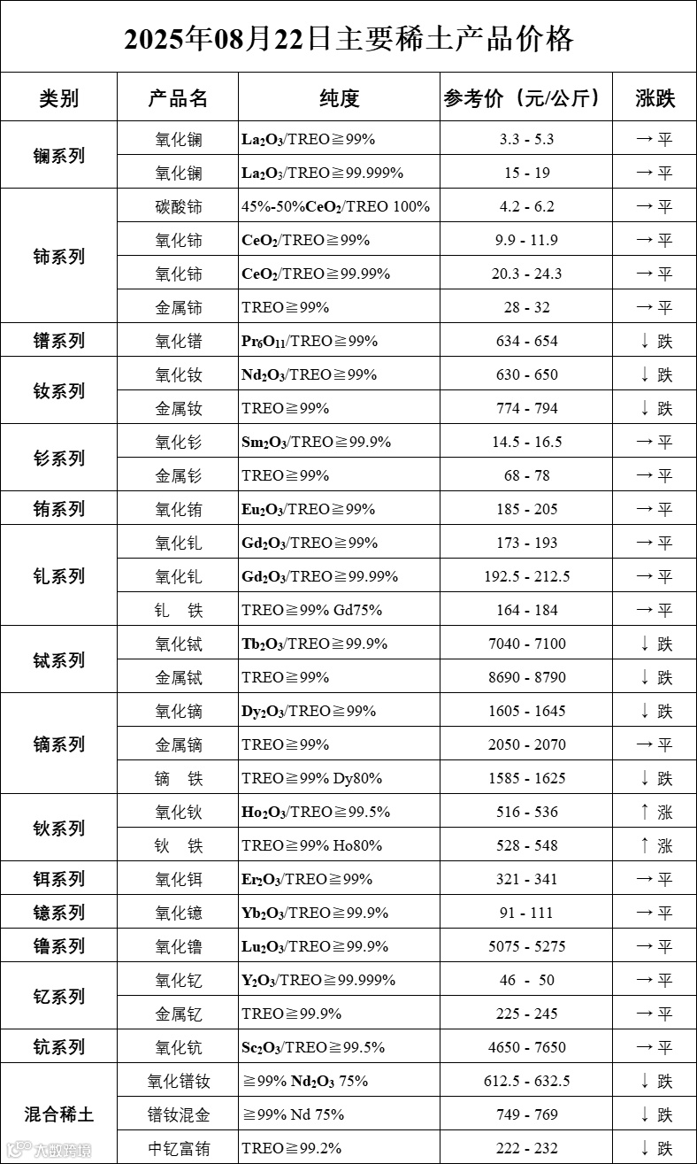 主要稀土价格