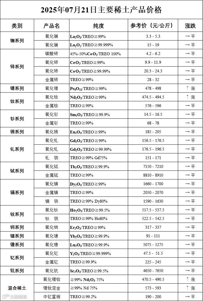 主要稀土价格