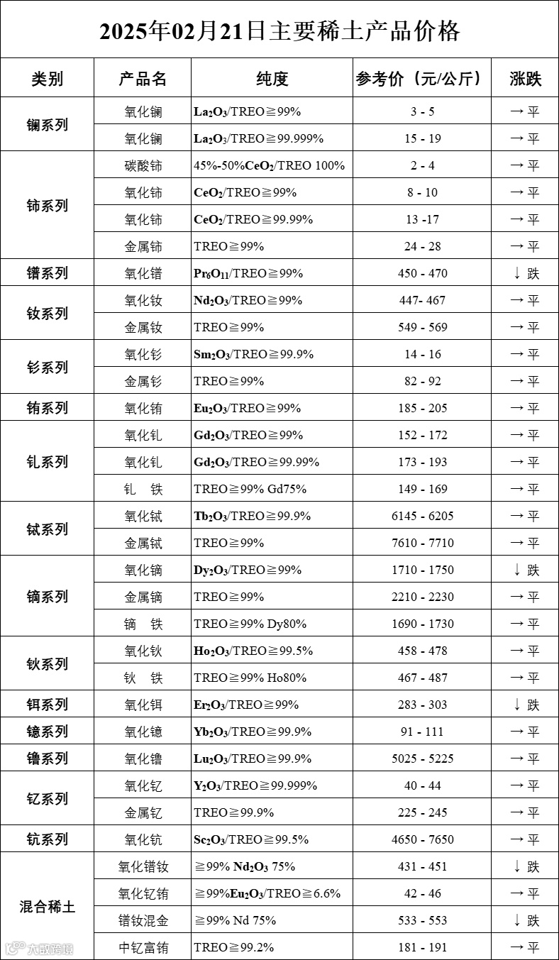 主要稀土价格