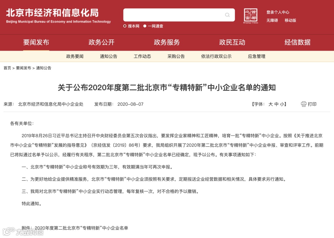 近日,北京市经济和信息化局公布了2020年度第二批北京市“专精特新”中小企业名单,北京易智时代数字科技有限公司榜上有名。