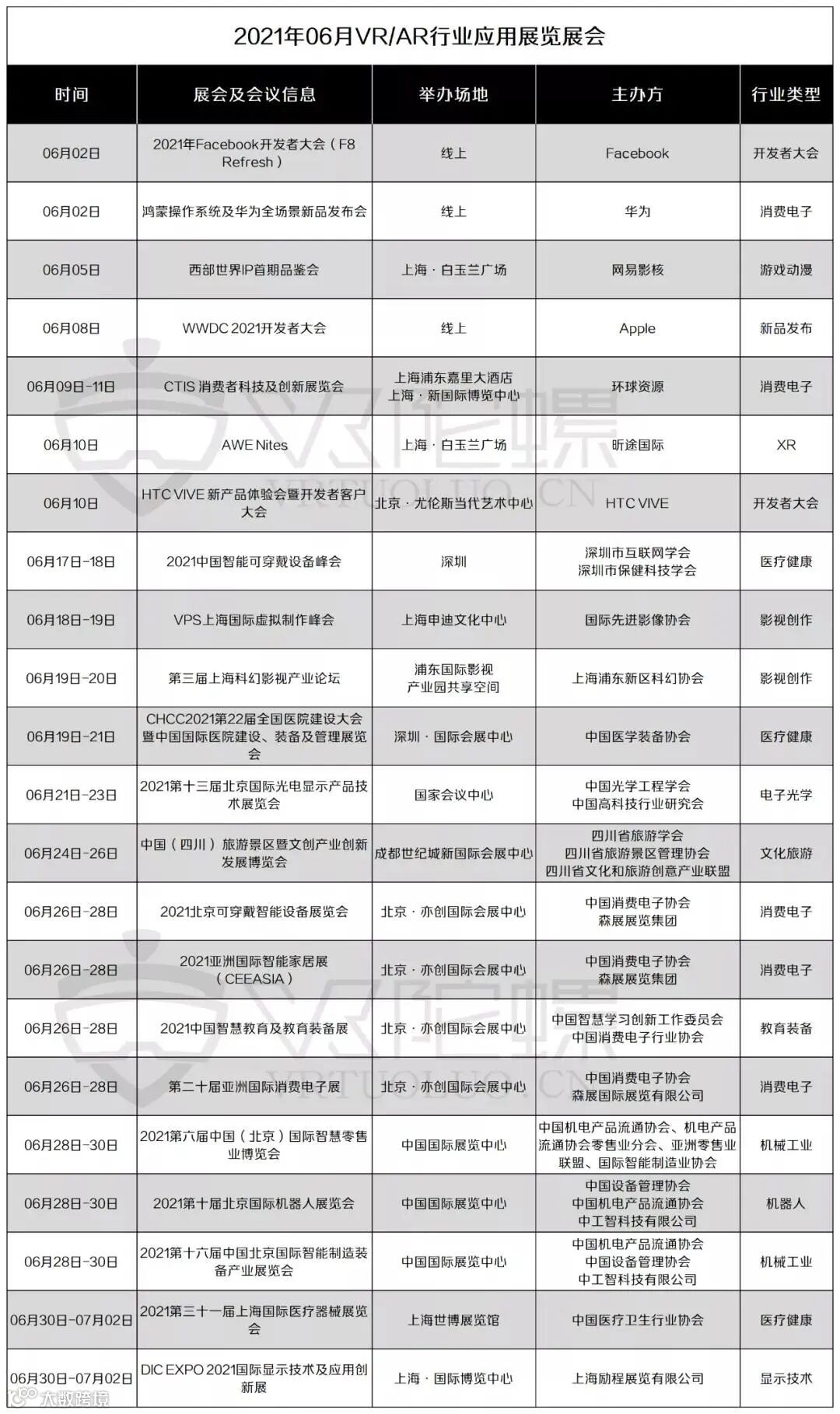 2021年6月VR/AR行业应用相关展览展会