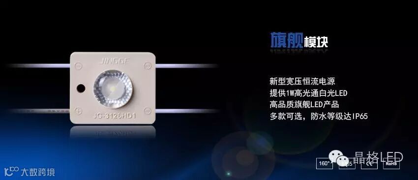 恒流模块JG-3126HD1,特殊设计透镜旗舰模块,可在模块排布间距较大时仍实现极佳的均匀性。