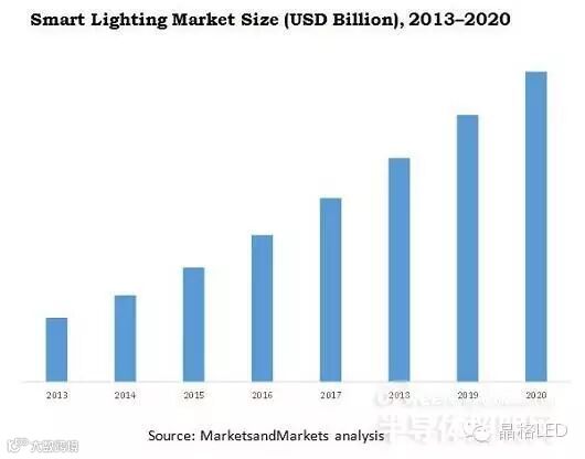 全球第二大市场研究咨询公司MarketsandMarkets最新发布的市场研究报告指出,到2020年,总的智能照明市场预计将达到81.4亿美元,2015年到2020年之间的复合年增长率为22.07%。