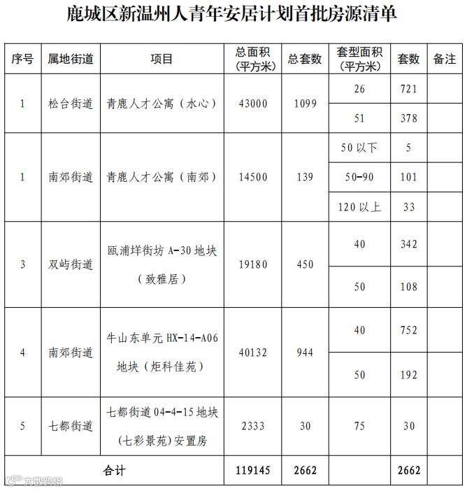 全区首批2662套房源已就位!覆盖松台、南郊、双屿、七都等街道,企业青年、科研人才优先!