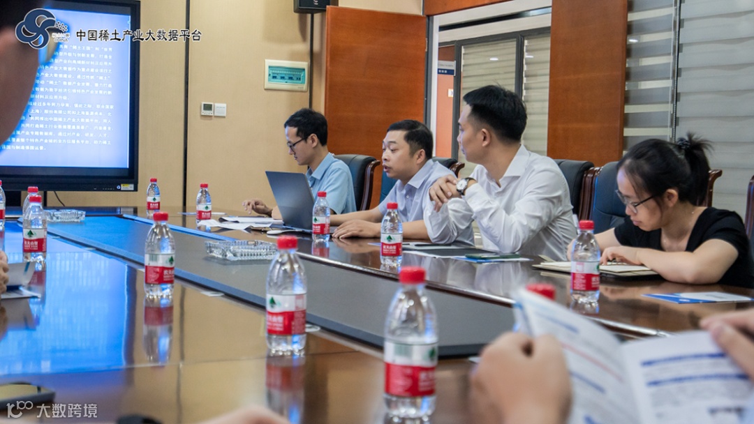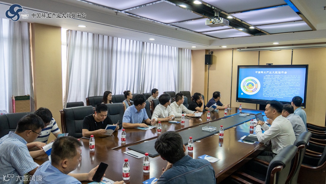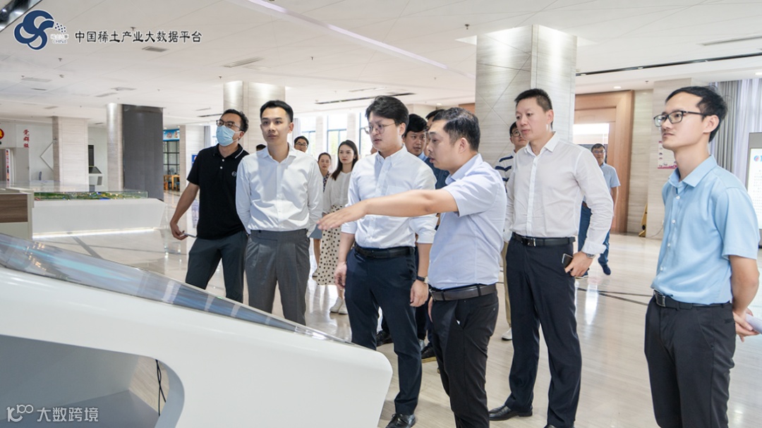 在一楼展厅,董事长杨竣辉为钟翔一行简单介绍了中国稀土产业大数据平台的基本情况,随后前往三楼稀金计算会议室召开了座谈会。中咨海外咨询有限公司代表,数字经济研究院生态圈核心成员——中国科学院云计算研究院、罗克佳华科技集团、东方金信科技有限公司和国育新业科技有限公司代表,稀金计算公司成员,市、区相关领导参加座谈。