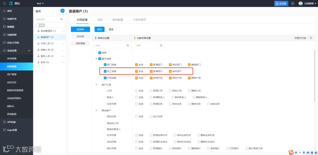 绑定权限后,拥有此功能权限的用户便可在用户端使用用户管理功能。