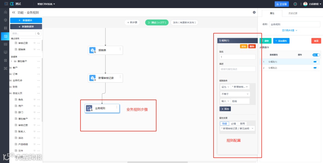 详细操作可以参考 :业务规则