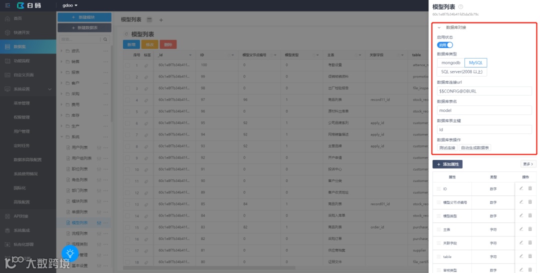 在各大平台都是仅开放api来做数据对接的时候,白码开放了数据库对接功能。目前支持的数据库有: