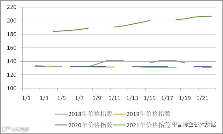 图3 2018-2021年稀土价格指数同期走势图