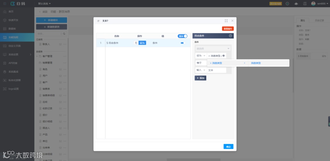 使用条件判断的步骤,判断消息类型是否为“文本”