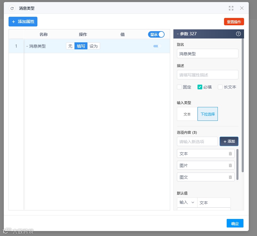 如:选择了文本类型,就只需要填写文本内容