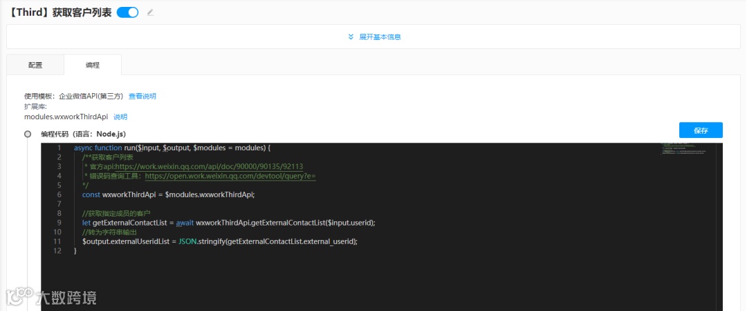 在功能中调用上图API可保存所有外部联系人id到联系人数据表中,这里就不详细说明了。
