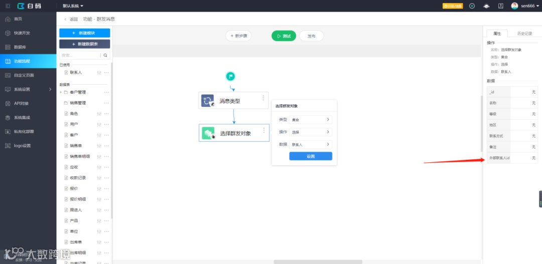 2.选择群发对象(可获取到外部联系人id)
