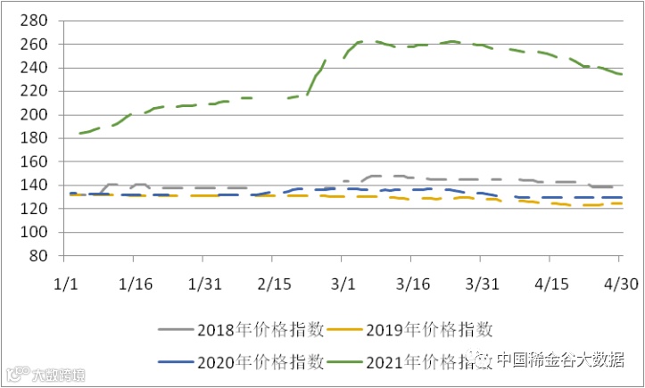 图4 2018-2021年稀土价格指数同期走势图