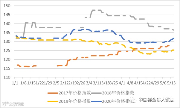 2017-2020年稀土价格指数同期走势图