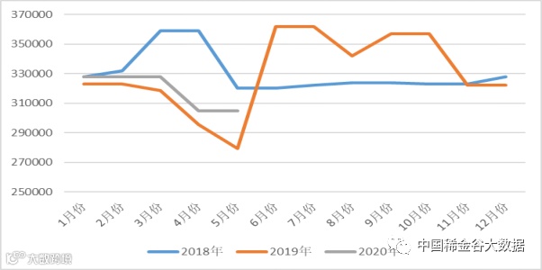 与2019年5月同期相比,同比变化均未超过10%,其中:镨钕系金属及其氧化物同比上涨;镧铈氧化物挂牌价格均同比小幅下降。