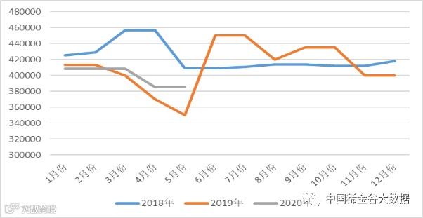图1 镨钕系轻稀土挂牌价格走势图(201805-202005)