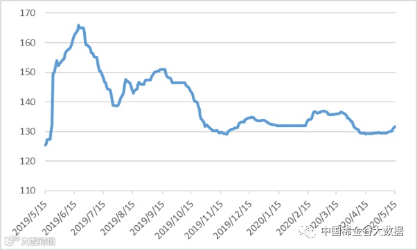 本周有五个交易日,稀土价格指数分别为130.1、130.6、131.1、131.4、131.8,稀土价格指数本周小幅调高。稀土价格指数年度走势及近四年同期价格走势见20190515-20200515区间稀土价格指数走势图、2017-2020年稀土价格指数同期走势图。