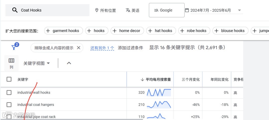 假设现在让我去做 衣帽钩 这个产品,其实我一无所知,翻译一下,只知道一个英文叫 Coat Hooks。