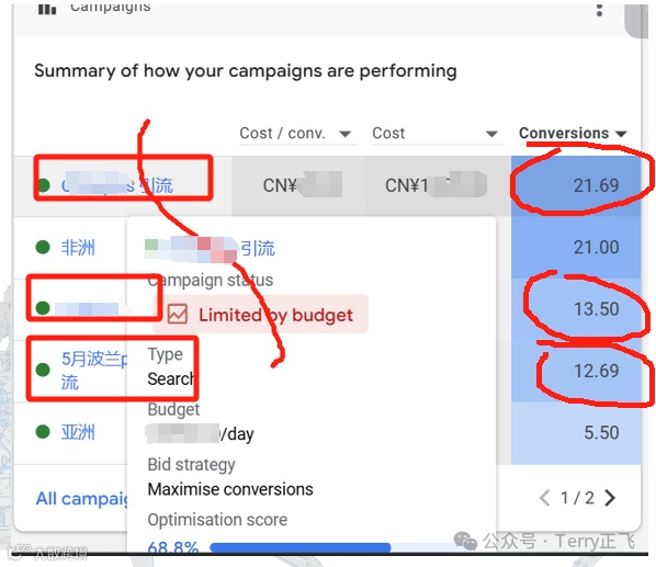 通常来讲,转化都是个位数,预算都花不完,更不会提示预算不足。
