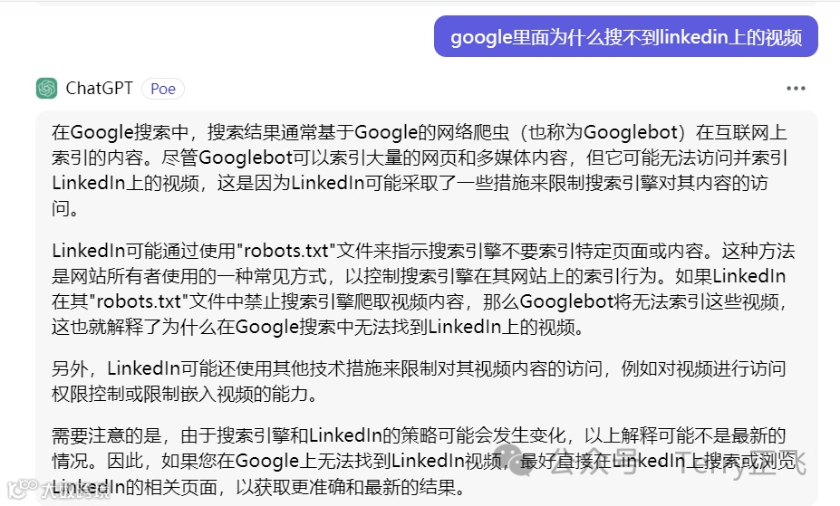 这个问题最要命的点,在于,已经默认了这个“事实”:谷歌搜不到linkedin的视频。