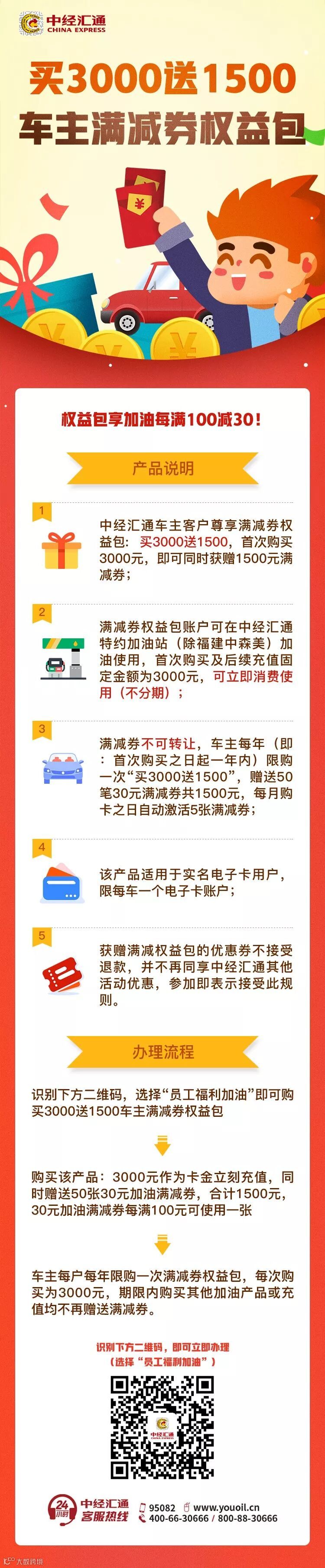 凡通过中经商城或中经油马APP内的活动入口购买,满3000元即送50张满100减30的优惠券,优惠券一次性到账,每月自动激活5张,激活后有效期为90天。