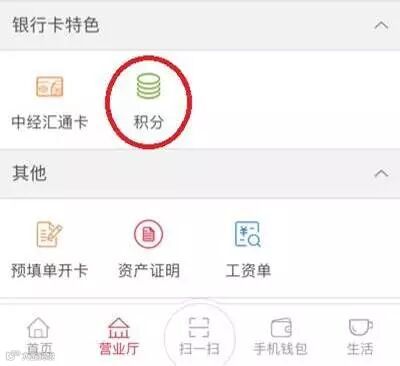 2、选择“银行卡特色”—“积分”