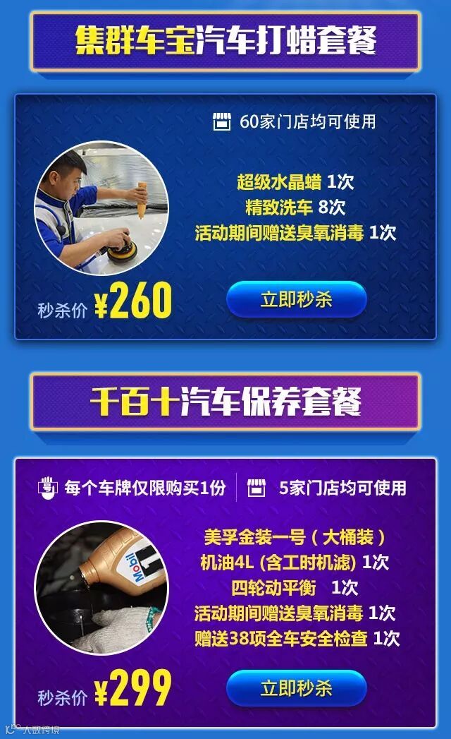集群车宝汽车打蜡套餐+千百十汽车保养套餐限量秒杀!