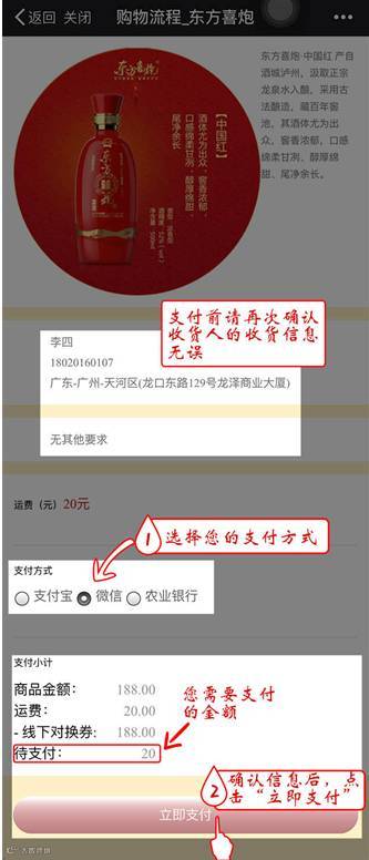 3.用兑换券兑换喜炮酒,不需支付兑换费用,但东方喜炮酒商城需用户付20元的运费,请理解;