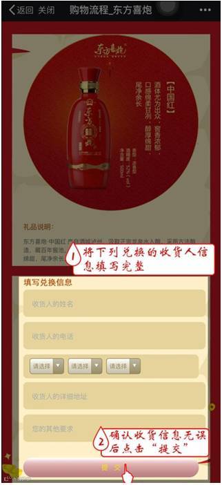 5.系统默认限制同一账户、同一收件人、同一地址只能兑换一次,如发现多次兑换,东方喜炮商城有权取消订单;