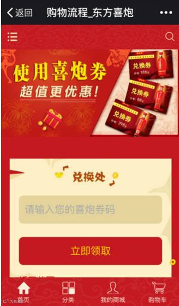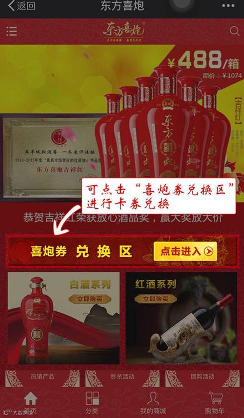 第二步:进入东方喜炮官方商城首页,点击进入喜炮兑换区(如图)