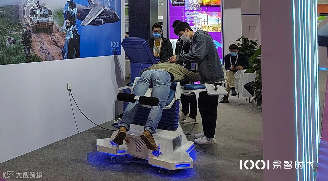 让人惊喜的是,易智时代将XR+军事“搬”到展会现场,给观众带来了一场科技与军事的融合盛宴。吸引了场内众多年轻的参展嘉宾,并通过VR虚拟射击打靶、VR模拟训练、VR跳伞、VR设计等高度真实的游戏体验让参展嘉宾了解什么是XR+军事。其中VR训练模拟器(枪),具有与真实枪支同等重量及重心,具有一定的后坐力通过在仿真枪械上加装VIVE追踪器,实现枪械位置的捕捉以及扣动扳机的信号传输,得到了参展观众的高度青睐和喜爱。
