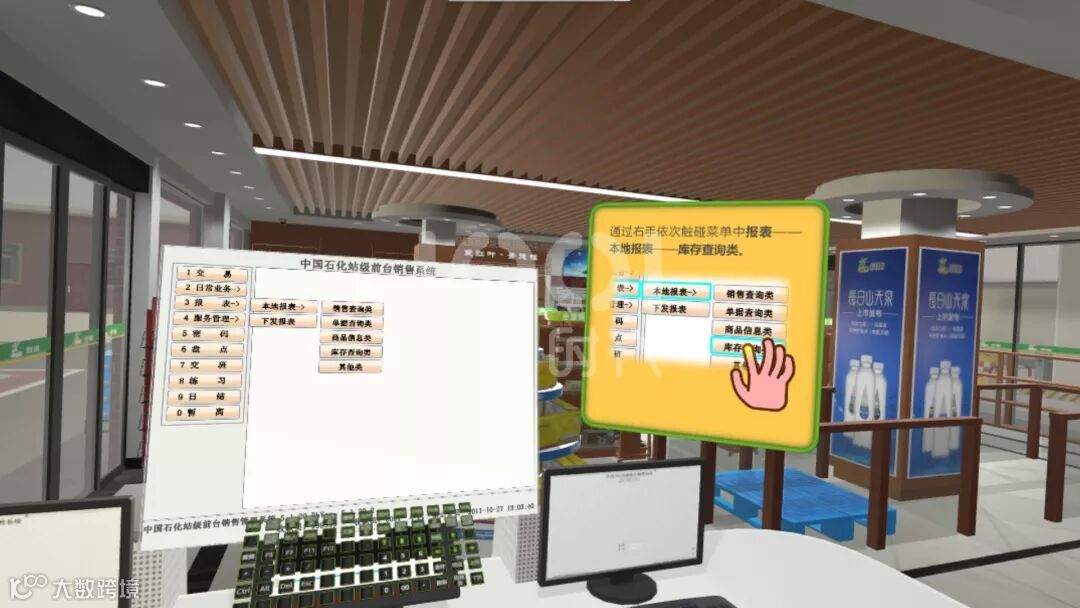 VR易捷便利店教考系统完成研发,在交互体验上实现高自由度,内含设计1400种商品的素材库和极高自由度,受训学员可在虚拟场景中完成店铺设计、货品陈列、店面销售、仓储物流等一系列内容的学习与考核。