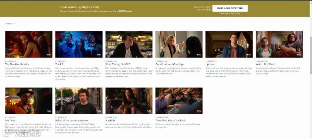 《High Fidelity》第一季总共10集,整部剧治愈又温馨。