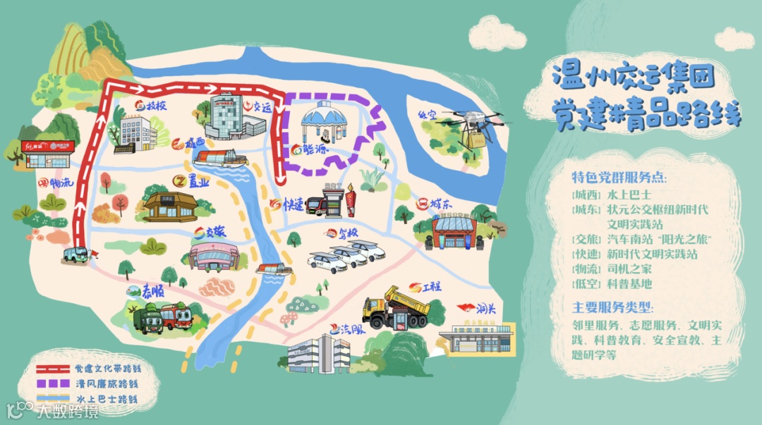 当前,温州交运集团正全面贯彻市属国企新时代基层党建强基赋能三年行动,持续深入推进党建引领市场化改革“四大行动”,积极培育新质生产力,推动交通体系从“路网、水网”向“低空”拓展,着力构建“水路空”立体融合的党群服务网,创新推出定制公交、光储充放充电桩、水上研学线路、交享点等102个交通特色产品投向市场,切实把群众所需办成民生实事。