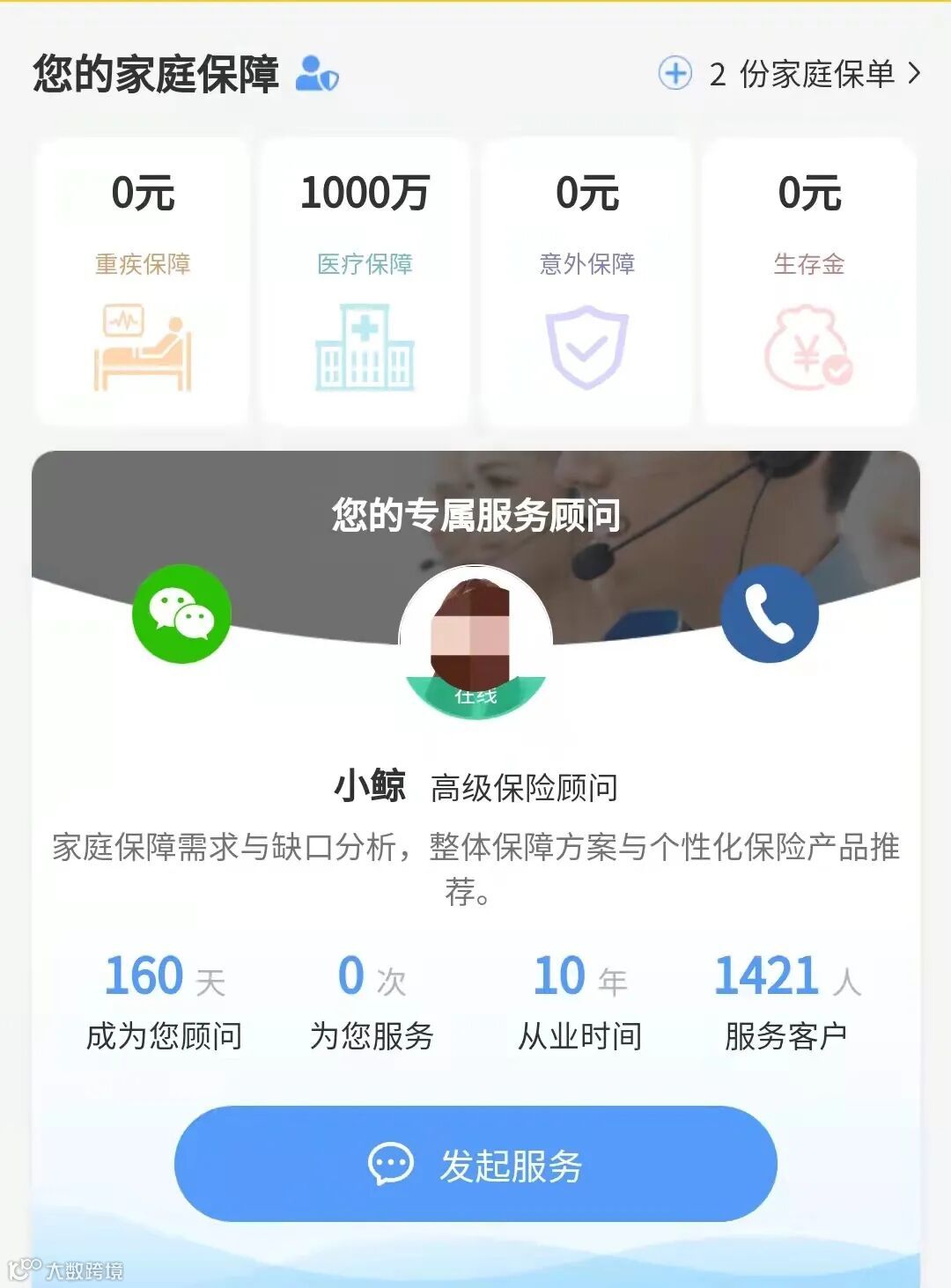 比如小编使用的小鲸向海保险专家小程序,发起保单托管的服务,保险专家会帮助整理所有的保单。