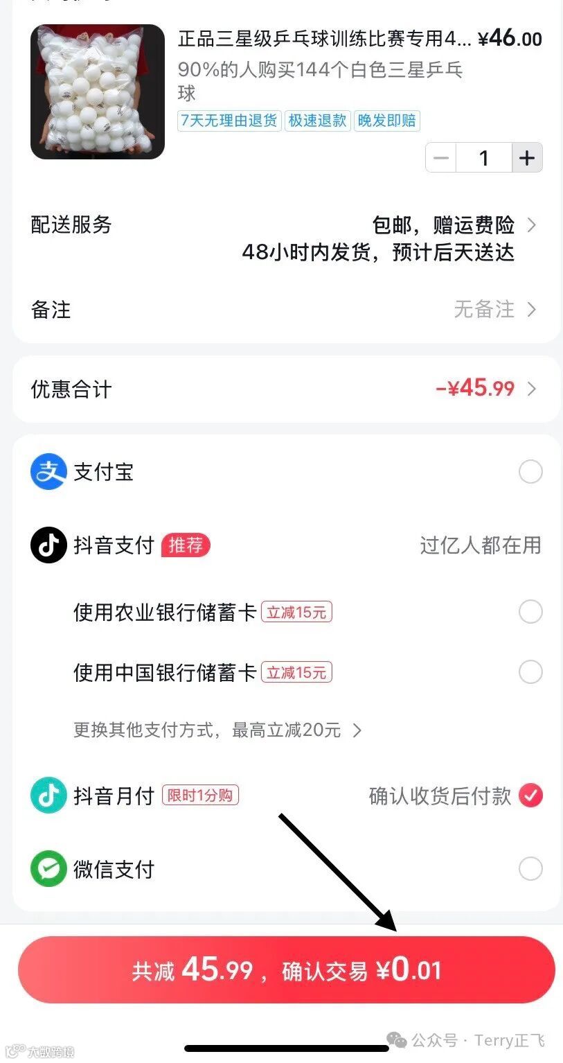Terry正飞原价46的乒乓球,只要1分钱😅