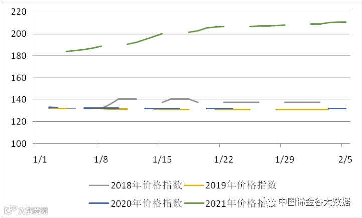 图3 2018-2021年稀土价格指数同期走势图