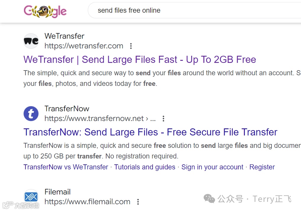 如果你啥也不知道,那就问下chatgpt,或者先谷歌搜索下 send files free online